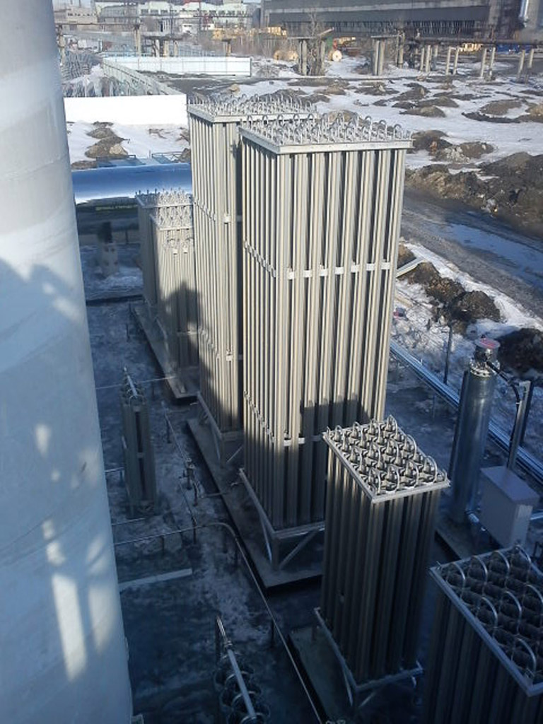 Фото 3. Испарители ИС 0570-С и ИС 0430-С системы хранения и газификации азота и кислорода (ОАО «Сатурн – Газовые турбины», г. Рыбинск)